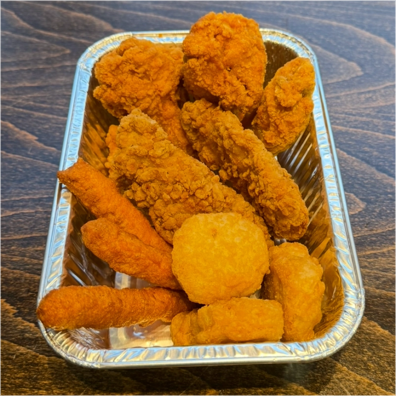 3 chicken hotwings, 3 chicken strips, 6 chicken nuggets